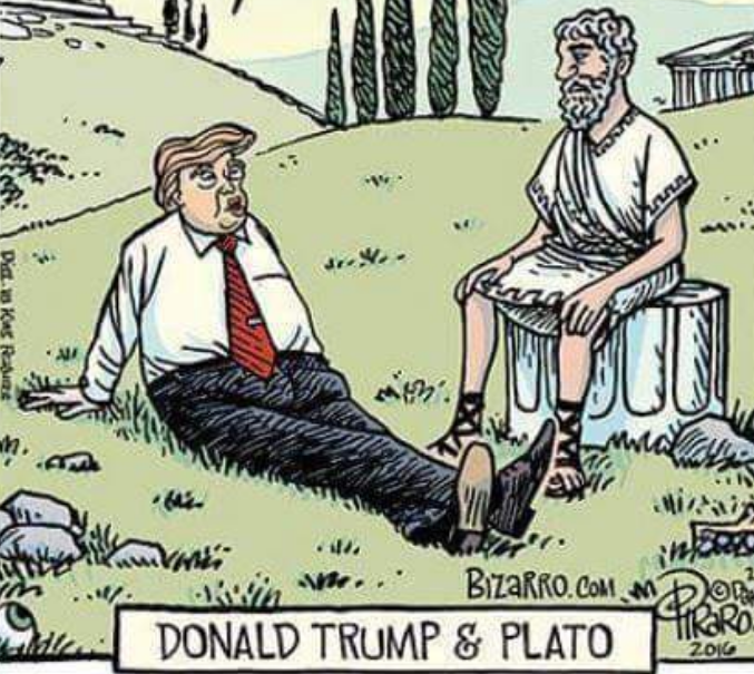 Ich blicke aus dem verstaubten Fenster des knirschenden Busses und frage mich amüsiert, wie wohl ein Gespräche zwischen Platon und Trump aussehe. „Du Donald, nichts für Ungut, aber wegen Menschen deines Schlages bin ich gegen das Konzept der Demokratie. So etwas wie dich wollte ich schon immer vermeiden!“